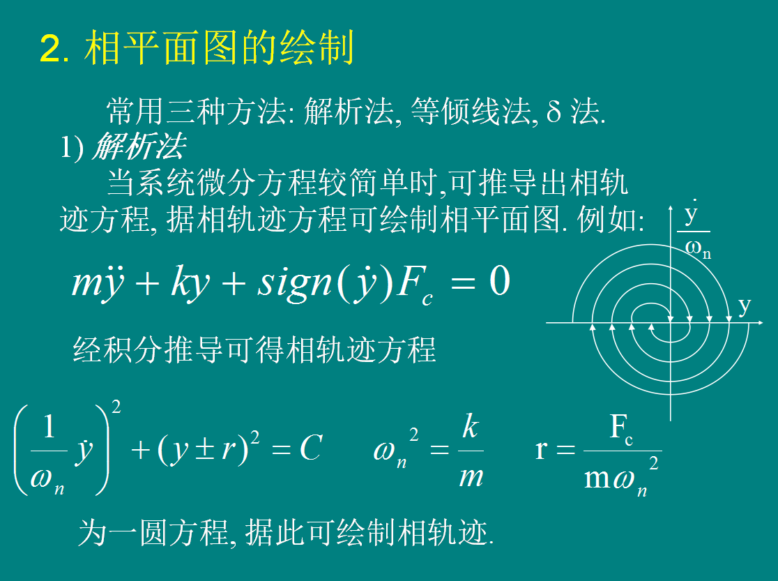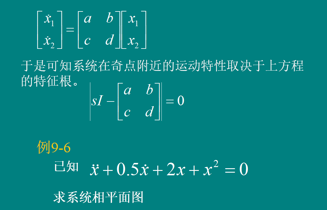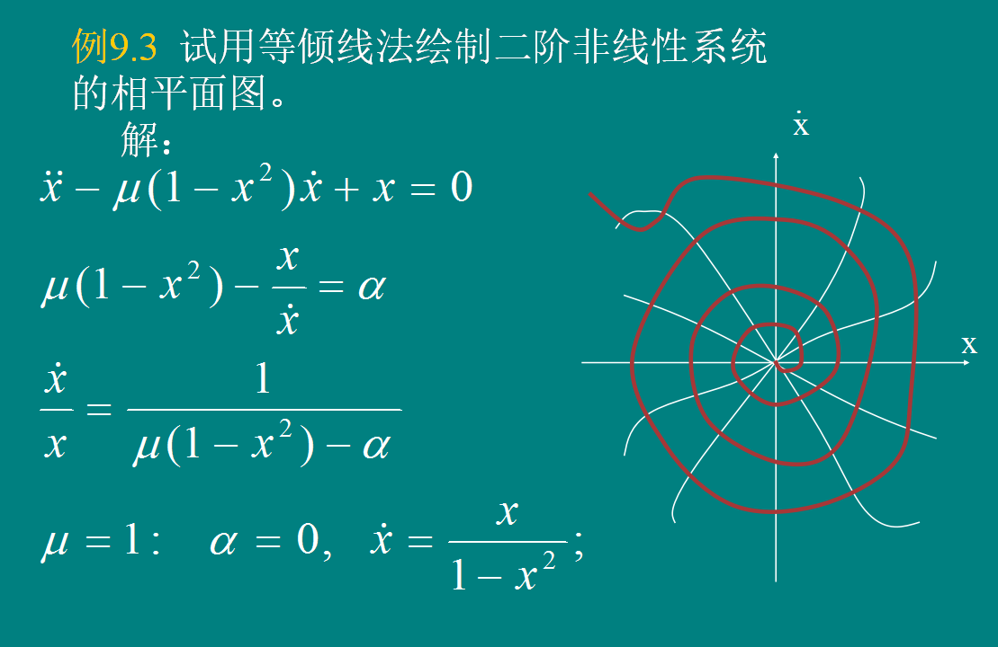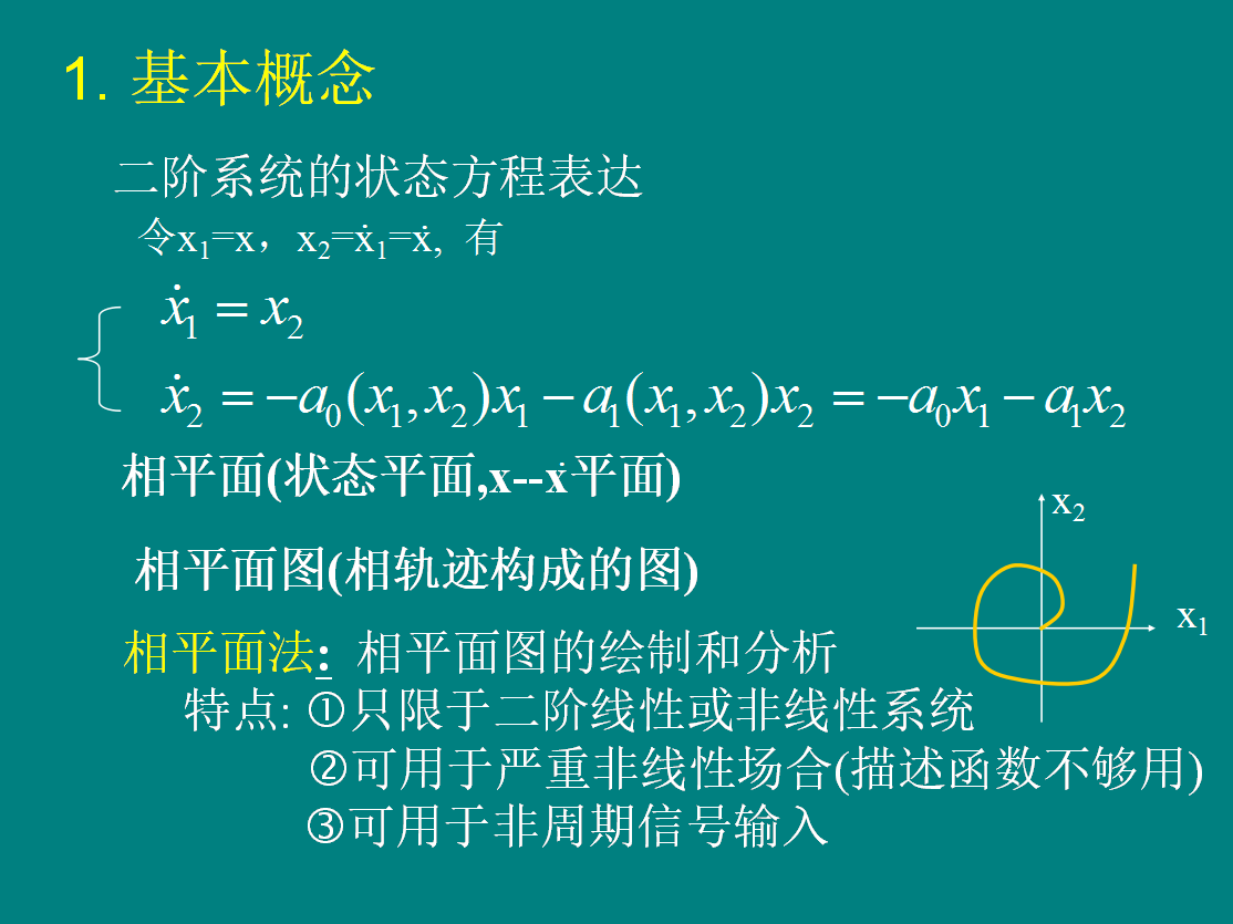 非线性系统的相平面分析法是状态空间分析法在二维空间下的应用, 它是一种用图解法求解二阶非线性控制系统的精确方法。它不仅能给出系统的稳定性和动态性能信息,还能给出系统运行轨迹的清晰图象。