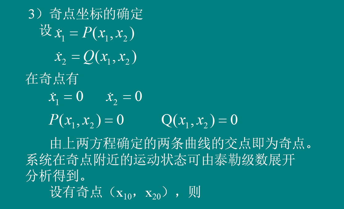 奇点是系统的平衡点。在奇点处相轨迹的斜率为不定值。可以有无穷多条相轨迹趋近或离开奇点。