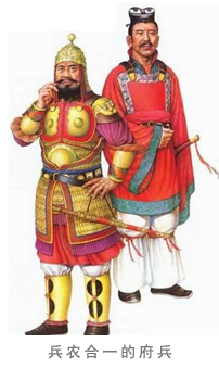 北宋吸取晚唐五代军阀割据的教训,改革军制,强化皇权。皇帝亲掌军队建置、调动和指挥权,其下兵权三分:“枢密掌兵籍、虎符,三衙管诸军,率臣主兵柄,各有分守。”军队分禁兵、厢兵、乡兵和边境地区的蕃兵。五代、两宋时期北方地区出现过辽、西夏、金等少数民族政权,其军制多带部族特色,如辽朝部族军和两院制,金朝猛安谋克制等。隋、唐重建和发展了封建专制主义中央集权制,改革早期府兵制,军户编入民户,军人受田。府兵在乡为农,在军为兵,实行兵农合一、寓兵于农制。中期后,府兵制崩坏,募兵制兴起。