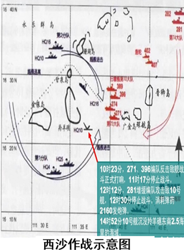 为保卫国家领土主权,中国人民解放军海军南海舰队,在航空兵掩护下,于1974年1月17日驶往西沙永乐群岛海域执行巡逻任务,保护中国渔轮安全生产。1月19日晨,南越海军接近中国舰队。7时40分,南越强登琛航、广金两岛,当即被中国军民击退。10时22分,南越4舰同时向中国舰艇编队发起攻击,中国舰艇奋起自卫,各舰群集中火力猛烈还击。经4个多小时激战,南越护航炮舰10号被击沉,多艘驱逐舰被击伤后逃逸。