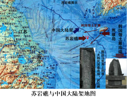 苏岩附近海域是我国鲁、苏、浙、闽、台五省渔民自古以来活动的渔场,长江口渔场和舟山渔场是我固有海区,近代以来包括日、韩无任何国家对此提出过异议。位处中国大陆架上的中华苏岩礁,东海面积77万平方公里,涉及中韩日三国。韩国根据自身利益历来顽固主张不同原则,济洲岛以南要求自然延伸,向西又要求中间线原则;日本则主张所谓的中间线原则,并且以钓鱼岛作为基点,单方面在中间划了一条所谓的中间线,并开始对这条线采取实际控制;中国一直坚持自然延伸原则,主张在东海大陆架一直延伸到冲绳海槽中心线。总之,三方争议面积很大。