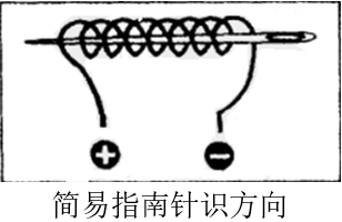 简易指南针法。如果拥有2伏以上的干电池或其他电源,就可利用电流磁化金属的原理,用一小截金属线(最好外包绝缘皮)来制作电磁针。其方法是:将外包绝缘皮的电线绕成线圈,让铁针穿过线圈。如果电线外没有绝缘胶皮,可以首先把铁针外缠几层纸或一块卡纸。将线圈两端连上电流,至少五分钟,铁针便会指出南北方向。