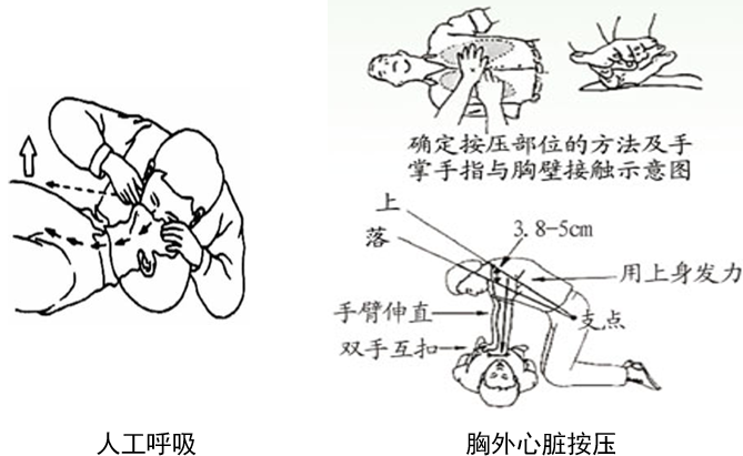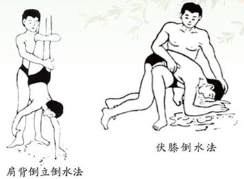 溺水急救。对于刚被救上岸的溺水者,首先应立即清除其口、鼻中的污泥、杂草、呕吐物等。如溺水者尚有呼吸和心跳,抢救者应屈膝,并将溺水者的腹部置于自己的大腿上,使其头部下垂,然后按压其背部,使口腔及气管内的水迅速倒出。