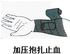 2.包。无论什么样的出血,最终都要用包扎来解决。包扎所用的材料是纱布、绷带、弹性绷带或干净的棉布或用棉织品做成的衬垫。包扎的原则是先盖后包,力度适中。先盖后包即先在伤口上盖上敷料(够大、够厚的棉织品衬垫),然后再用绷带或三角巾包扎。这是因为常用的普通纱布容易粘伤口,给后续处理增加难度。力度适中指的是包扎后应止血有效,检查远端的动脉还在搏动。包扎过松,止血无效;包扎过紧,会造成远端组织缺血缺氧坏死。