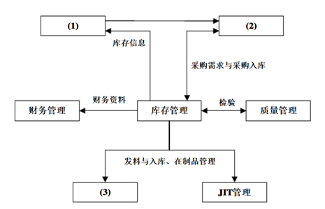 4. 库存管理与其他管理的关联如下图所示,请填写空缺的信息,简述它们之间的关联。