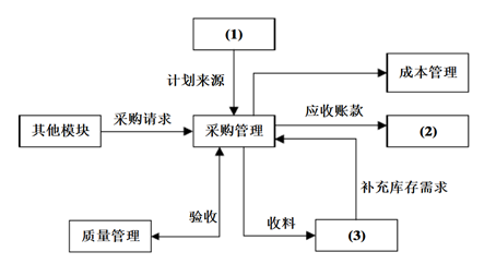 3.ERP中采购管理与其它管理部门都有着密切的关系,如下图所示,请填写空缺的信息。再根据此要描述采购管理同其它管理如成本管理、质量管理等的关系。