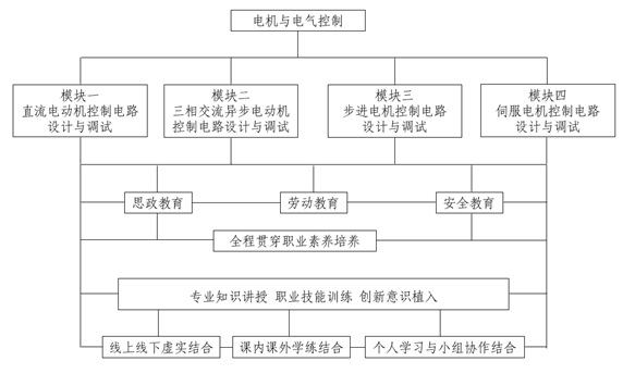 作为电能生产、传输、使用和电能特性变换的核心装备, 电机在现代社会所有行业和部门中占据着越来越重要的地位。尤其是在“数智转型”深化赋能“双碳”战略时期,电机逐步向高效节能、绿色智能等方向发展,其市场对各类电机的控制应用、维护以及电机产品生产管理等的人才需求日趋增长。在这样的背景下,从电气自动化技术专业就业典型岗位(机电设备装调、维护、技术支持、项目管理以及系统设计集成等)人才综合素养与技能要求出发,确立《电机与电气控制》为电气自动化技术专业的核心课程。从电机原理讲解到电机选型、电路装调、性能测试、故障检修、综合应用等方面,通过任务驱动方式,让学生全面掌握电机结构及原理等专业知识,提升对不同类型的电机驱动电路搭建、装调、测试技能,培养学生在电机产品生产管理以及维护方面的职业综合素养。该课程以《模拟电子技术与实践》《数字电子技术与实践》等课程的学习为基础,又为后续《PLC触摸屏与运动控制技术应用实践》《1+X可编程控制器系统应用编程》等课程的学习奠定基础。