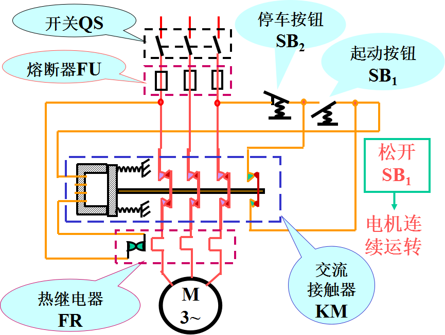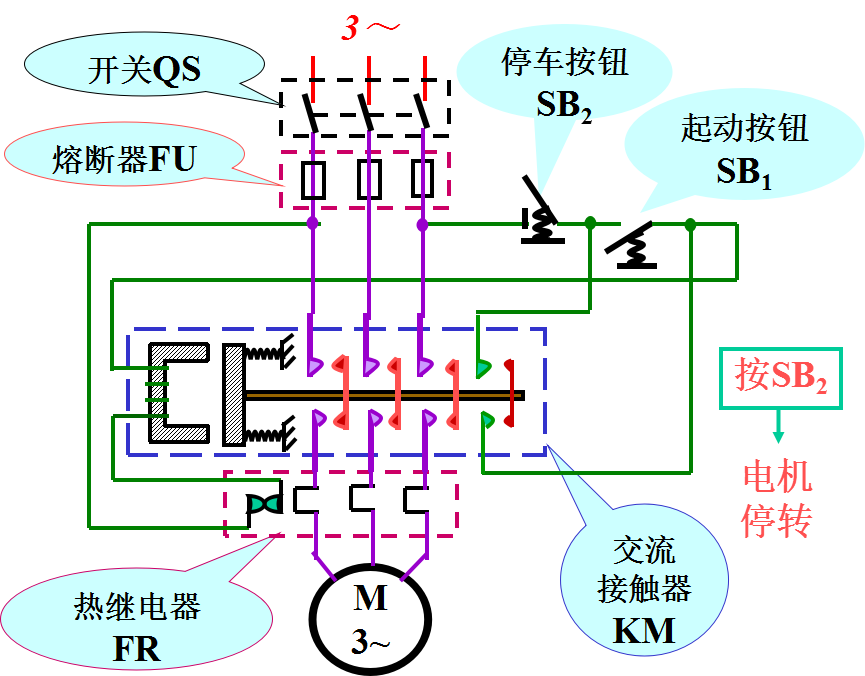 动切断QS,电动机M停止工作。
