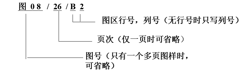 元件的相关触点位置的索引用图号、页次和区号组合表示。