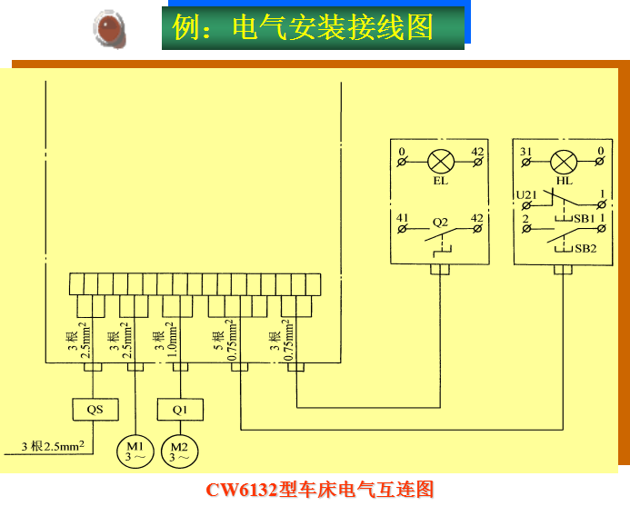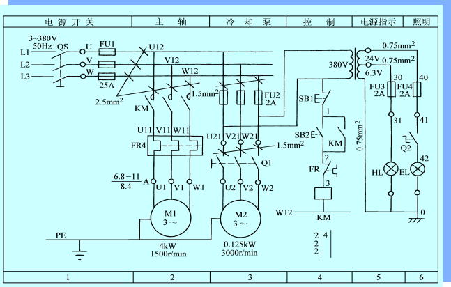 三相交流电源的引入线用L1、L2、L3、N、PE标记。直流系统电源正、负极、中间线分别用L+、L-与M标记。三相动力电器的引出线分别按U、V、W顺序标记。