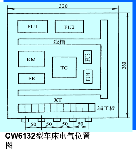 1)体积大和较重的电器元件应安装在电器安装板的下方,而发热元件应安装在电器安装板的上面。