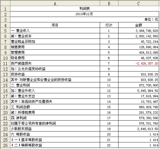 图7-2 ABC公司2013年利润表
