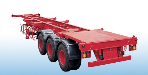 (1)40ft集装箱专用车。它具有两个TEU箱位,可装载1个13m(40ft)集装箱或2个6.6m(20ft)的集装箱,也可装载4个3.3m(10ft)集装箱,因此,其适应面较广,能灵活运用。