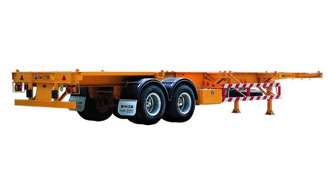 骨架式集装箱半挂车,该车专用于运输集装箱。由底盘骨架构成,因此自重轻、结构简单、维修方便。
