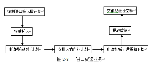 港口进口货运业务是指当班轮运输的集装箱到达目的港卸下以后运往收货人处的货运业务。一般处理流程如下图2-8所示: