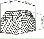 航空用成组器是指装载在飞机内与固定装置直接接触,不用辅助器就能固定的装置,它可以看成是飞机的一部分。从结构上又可分为部件组合式和完全整体结构式两种。部件组合式指由托盘、货网、固定结构圆顶(如下图2-9、2-10所示)或非固定结构圆顶组合成一个可在机舱内固定的装卸单元。整体结构式指单独形成一个完整结构的成组器,它的外形不是长方形,而是与机舱形状相配合,可直接系固在机舱中(如下图2-12所示)。