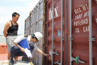 实习生小张:等等,集装箱还没有检查,先检查一下集装