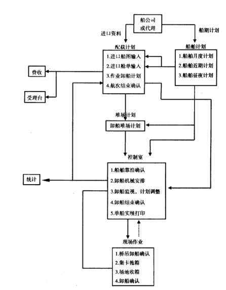 船舶到港后,码头进口业务员或船舶指挥员上船向船方领取随船到港资料,包括船图、舱单资料,并向船方了解有关进口箱货位的实载情况与原始资料有出入,应迅速调整卸船计划,同时更正相应的堆存计划。