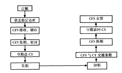 拼箱货由集装箱货运站(Container Freight Station / CFS)负责装箱,并缮制有关单证。其货运流程见图6-2。