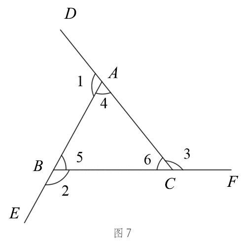 如图3,向两个方向延长三角形的各边,可以画出一个三角形的所有外角.