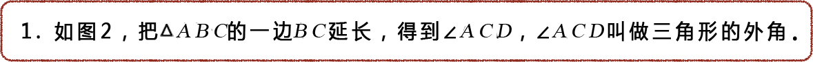 三角形外角的定义:三角形的一边与另一边的延长线组成的角, 叫做三角形的外角.