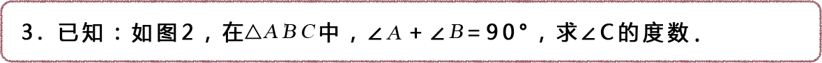 由三角形内角和定理, 得∠A+∠B+∠C =180°, ∴∠A+∠B+90°=180°, ∴∠A+∠B=90°. 图1 |