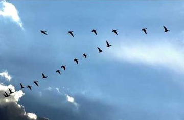 丹顶鹤总是成群结队迁飞,而且排成“人”字形。“人”字形的角度是110度,更精确地计算还表明“人”字形夹角的一半——即每边与鹤群前进方向的夹角为54度44分8秒!而金刚石结晶体的角度正好也是54度44分8秒!是巧合还是某种大自然的“默契”?