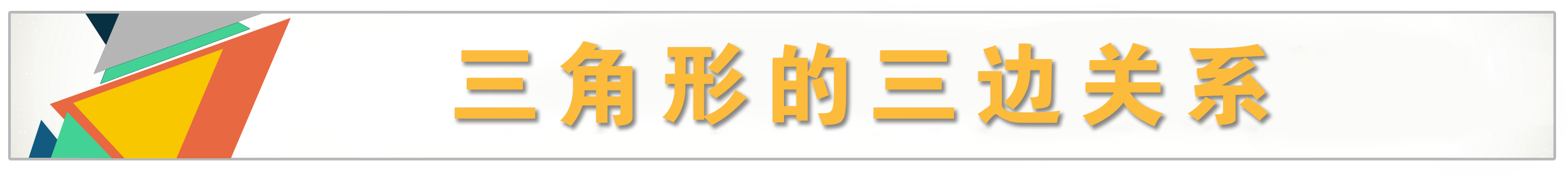 由“两点之间,线路最短”可以得到: AB+AC>BC , ① 同理有: AC+BC>AB , ② AB+BC>AC , ③ 一般地,我们有: 三角形两边的和大于第三边. 由不等式②③移项可得: BC>AB-AC,BC>AC-AB. 这就是说,三角形两边的差小于第三边. |