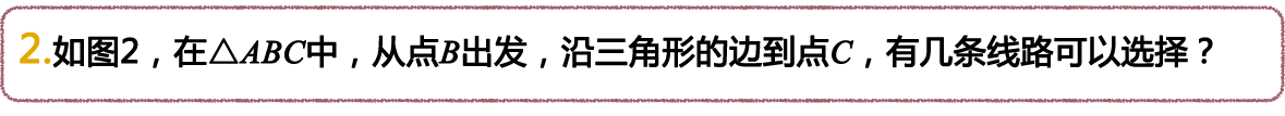 一条线路是由点B到点C;另一条路线是由点B到点A,再由点A到点C. 两条路线的长怎样表示呢?两条路线的长分别是BC,AB+AC,两条路线的长有什么关系?为什么? |