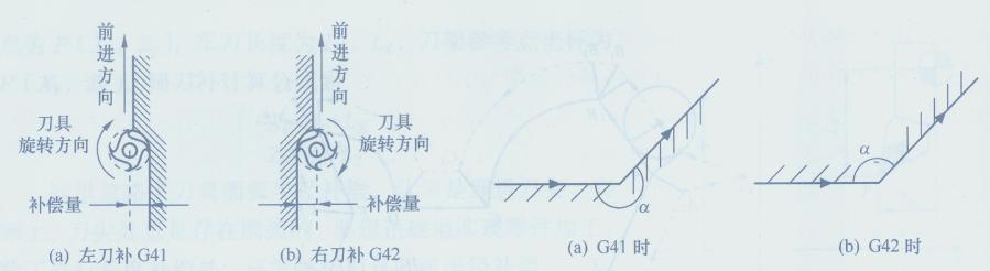 ①刀补方向—刀具沿编程轨迹前进方向左侧行进时,称为左刀补用G41表示。刀具沿编程轨迹前进方向右侧行进时,称为右刀补用G42表示。取消刀补时用G40表示。