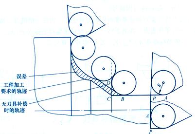 连续轮廓加工过程中。因为刀具不是理想的质点,都有一定形状和大小,如铣刀半径、钼丝半径、车刀的刀尖圆弧半径等。如果不考虑刀具半径,让刀具中心按编程轨迹运动,则加工出来的零件轮廓就会偏离图纸要求,产品报废或不合格。