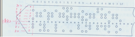 N05 G90 G01 G01 X106 Y-60 F46 M05 LF,纸带穿孔后如图3.8