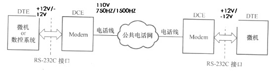 目前广泛采用的是RS-232标准如图3.2是近程和远距离数据通讯接口图。CNC的RS-232接口功能实现输出并/ 串转换,输入实现串/并转换,并符合RS-232异步通讯协议,并经过电平转换电路将TTL电平转换为±12V电平,可以实现远距离和抗干扰传送。如果借助于Modem变换借助于电话线将逻辑0、1转变成为110V,1500HZ/750HZ的交流正弦信号可以传送几十公里,另一端在用Modem将110V,1500HZ/750HZ的交流正弦信号转变为逻辑0、1后再转变成TTL电平信号。常用的RS-232接口连接形式如图