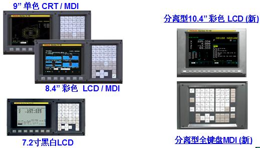 输入输出装置的作用是实现零件程序和控制数据的输入、显示、存储和打印等。输入是指将程序及加工信息传递给计算机。早期输入装置为穿孔纸带(穿孔机和纸带阅读机)现在已经淘汰,目前广泛使用的有MDI键盘。输出是指输出内部工作参数、零件加工程序、模拟加工轨迹仿真及控制程序梯形图和PLC状态、报警信息等。常见的输出装置有显示器、打印机等,而磁盘和U盘和串行接口、网络接口既是输入也可以当输出接口。图1.2是常见的输入/输出装置显示器和MDI键盘图。
