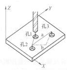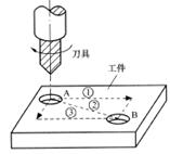 (1)点位控制数控机床—注重机床的移动部件从一个点到另一个位置点的定位是否准确,不关心其移动轨迹如何,在移动与定位过程中不进行任何切削。如数控钻床、数控坐标镗床、数控冲床、数控点焊机和数控折弯机等。图1.10是点位控制机床加工工艺图。
