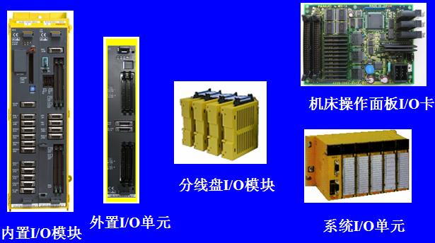 数控机床除了主轴的旋转运动和进给轴的位置控制以外的所有运动称为辅助运动,作用是实现数控机床自动化,提高加工效率。CNC内部有PLC控制模块,通过并行或串行I/O接口—驱动继电器在控制电机、电磁阀控制液压和气动回路实现辅助运动控制。如模拟主轴正反转控制、刀架换刀、卡盘或主轴的自动夹紧放松、尾座套筒的前进后退、冷却、润滑、排屑、数控转台及自动夹具的控制等。图1.5几种常见的I/O接口部件