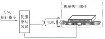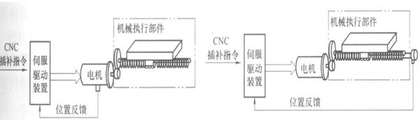 系统的位置采样点是从伺服电机或丝杠的另一端引出,通过检测伺服电机或者丝杠的转角,从而间接检测移动部件的位移,并与输入指令进行比较,用差值控制运动部件向减小误差的方向运动,如图1.15所示。