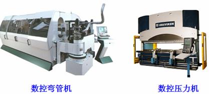 (2)金属成型类数控机床—将原材料采用锻压、折弯等工艺转变成零件的形状的数控机床。常见的有数控压力机、数控剪板机、数控折弯机和数控组合冲床等图1.8是几种常见的金属成型类数控机床。
