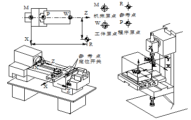 n 机床坐标系是机床固有的坐标系统,它是通过操作刀具或工件返回机床零点M的方法建立的。但在大多数情况下,当已装好刀具和工件时,机床的零点已不能返回,因而需设参考点R。