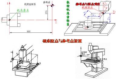 n 参考点是用于对机床工作台(或滑板)与刀具相对运动的测量系统进行定标与控制的点,一般设定在各轴正向行程极限点的位置。该位置是在每个轴上用挡块和限位开关精确地预先调整好的,通常在数控铣床上机床原点和机床参考点是重合的;而在数控车床上机床参考点是离机床原点最远的极限点。