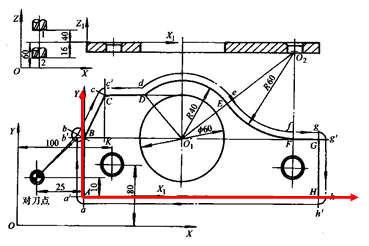 对刀点1→对刀点2 →b→c→c’→下刀点2→下刀点1