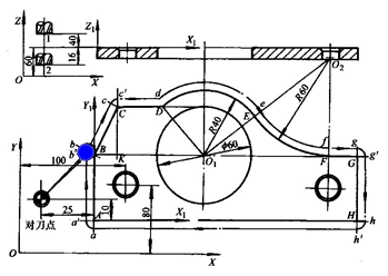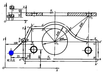 对刀点选择在工件坐标系中的位置为:(-25,10,40)