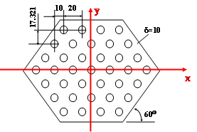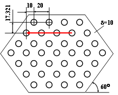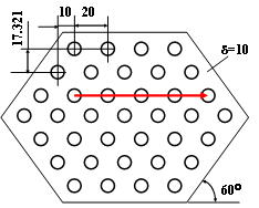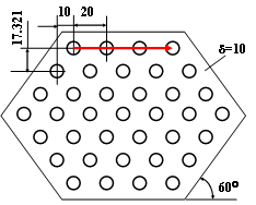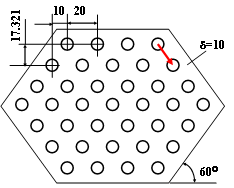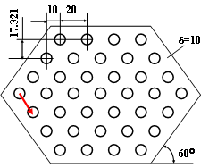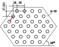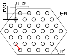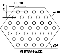 例: 采用固定循环方式加工37个f10的通孔,孔的分布如图所示,试编写加工程序。