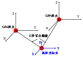 G54~G59无需在程序段中给出工件坐标系与机床坐标系的偏置值,而是安装工件后测量出工件坐标系原点相对机床坐标系原点在X、Y、Z向上的偏置值,然后用手动方式输入到数控系统的工件坐标系偏置值存储器中。系统在执行程序时,从存储器中读取数值,并按照工件坐标系中的坐标值运动。