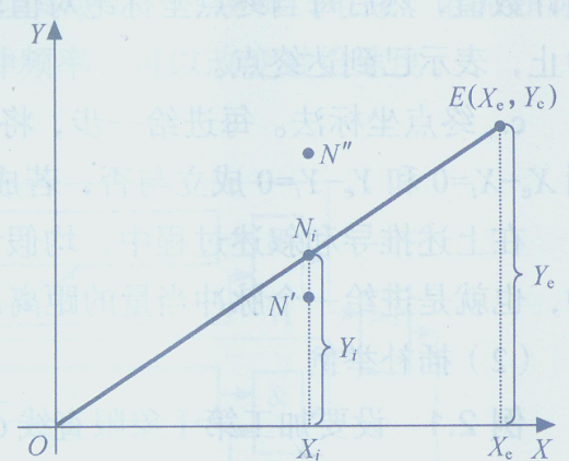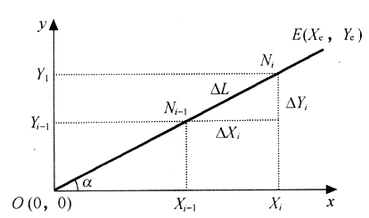 如图3.21所示,以第I象限直线/OE,起点O为坐标原点,终点E(Xe,Ye),动点坐标为Ni(Xi,Yi)。
