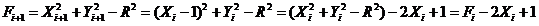 可见,新偏差函数的Fi+1 计算,仅与终点坐标(Xe,Ye)和上一点的偏差函数Fi有关,不做乘法,只做加减运算,从而提高了插补运算速度。