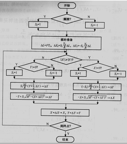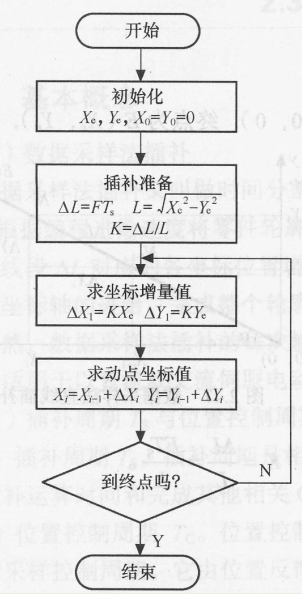 二是插补计算—每个插补周期均执行一次,求出该周期对应的坐标增量值(ΔXi, ΔYi)以及新的动点坐标值(Xi,Yi)