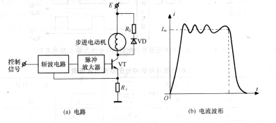 (3)恒流斩波型驱动电路如图4.18 所示,利用VT发射极电阻Re采样电流的变化,反馈到斩波电流,控制VT的导通与截止,从而使得电机绕组中的电流在预定值上下波动近似恒流,功率小、效率高、运行特性好。