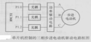 用单片机实现:利用查表指令和延时指令可以实现。首先将单三拍、双三拍或单双六拍放在一个表格中,指定对应表格首地址和步数,用单片机的P1.0、P1.1、 P1.2作为A、B、C相的节拍信号输出,经过光电耦合电路,再经过功率放大电路驱动电机工作。