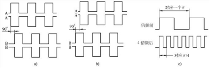 图5.4 光电编码器转盘顺转和逆转时输出的计数和辨向信号的相位关系